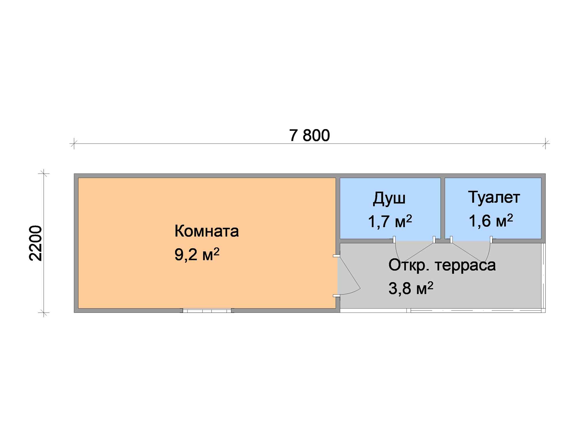 Дачная бытовка Крокус7.8x2.217.16ДВП-Оргалит: