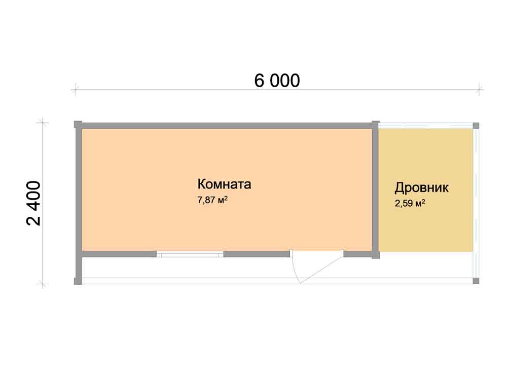 Хозблок для дачи в стиле хай-тек 6х2.4 с дровником6х2,414,4ДВП-Оргалит: