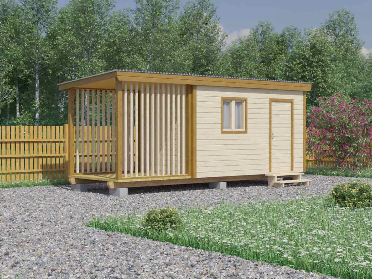 Бытовка для дачи в стиле хай-тек 4,8х4 с верандой4,8х419.2ДВП-Оргалит: